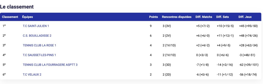 Avec ce succès, le T.C Saint-Julien 1 conserve la première place de la poule après trois rencontres.