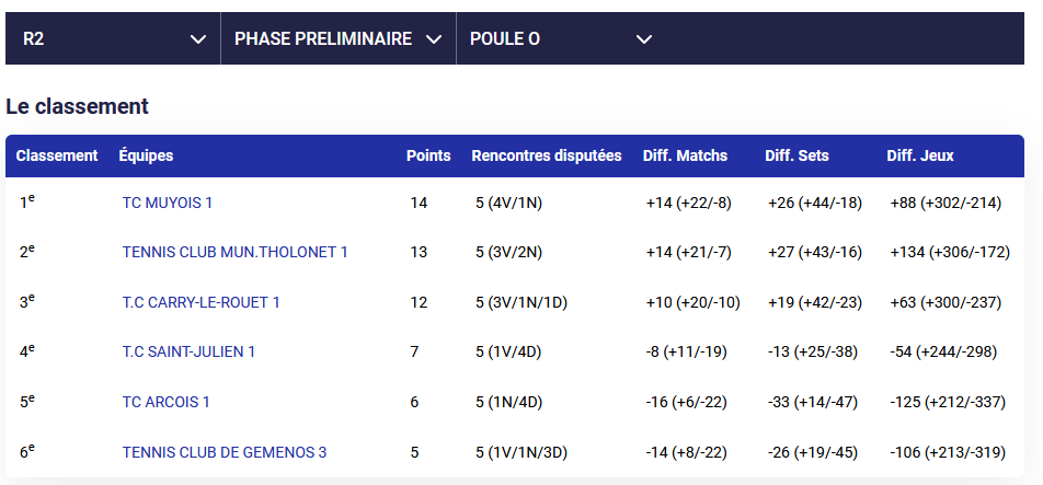 4ème journée : TC Saint-Julien 2 – TC Mouriesen 1